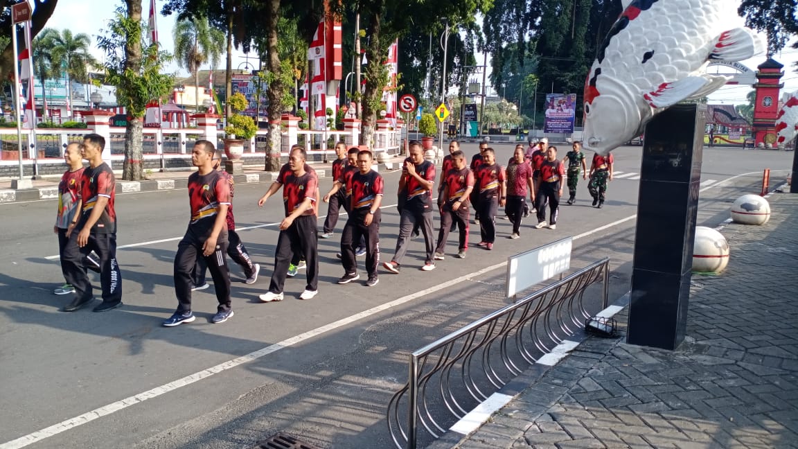 Olahraga bersama kali ini, di ikuti oleh anggota Militer dan PNS Kodim 0808/Blitar.