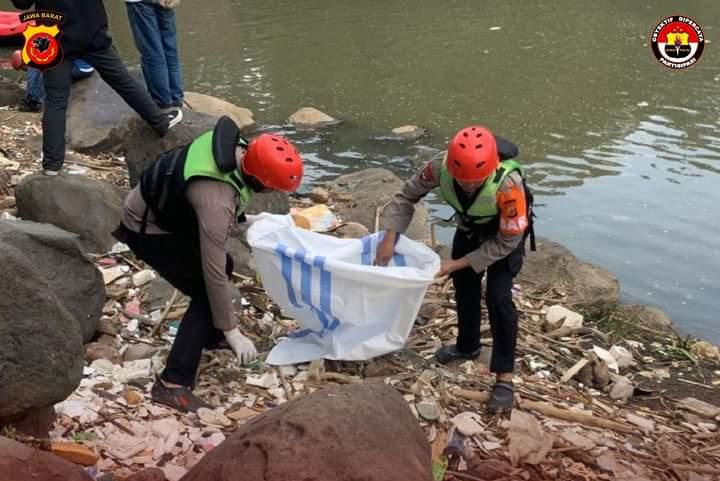 Melihat hal tersebut personel Sat Brimob Polda Jabar bersama TNI dan masyarakat melaksanakan kerja bakti membersihkan sampah-sampah plastik. Yang akan menyumbat aliran sungai ketika volume air meningkat.