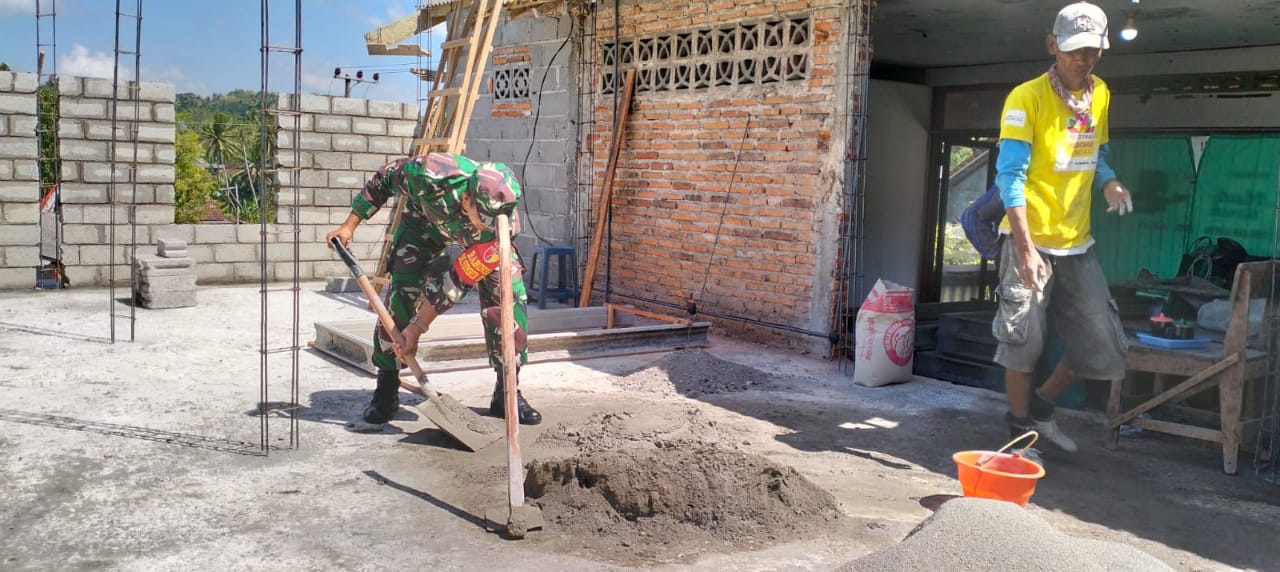 Manunggal Dengan Rakyat, Babinsa Koramil Bakung Bantu Warga Binaannya Bangun Rumah