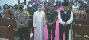 Dalam kunjungannya, Danrem 081/DSJ bersilaturahmi. Menyapa dan berinteraksi langsung dengan pimpinan gereja dan para jemaat yang sedang merayakan malam Misa Natal Tahun 2022.