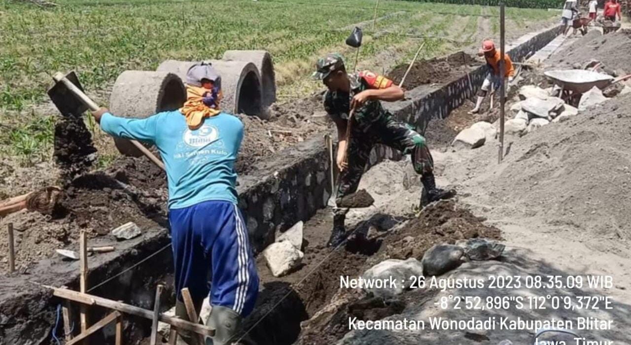 Balance News | Blitar – Sebagai wujud kepedulian terhadap pembangunan di wilayah binaan, Babinsa Koramil 0808/22 Wonodadi Kodim 0808/Blitar Serda Cucuk Hernawan . Dan warga masyarakat, melaksanakan kegiatan kerja bakti dan gotong royong bersama.