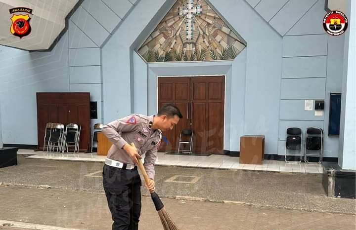 Ia menjelaskan selain melaksanakan bebersih tempat ibadah ini, pihaknya juga memberikan pemberian bantuan kepada pengurus Gereja.