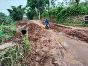 Jalan tersebut hancur lebur sehingga sulit dilintasi. Selama ini kita masih diam karena masih bisa dilalui, karena musim kemarau. Lihat musim penghujan ini hancur lebur, jalan licin dan berlumpur. Tutur Asep