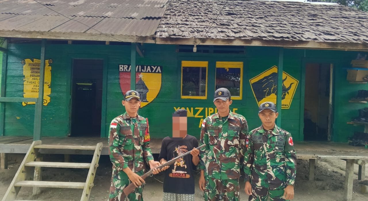 Balance News || Sintang – Satgas Pamtas RI-Malaysia menerima penyerahan senjata api rakitan jenis penabur dari warga Desa Riam Padang, kecamatan Ketungau hulu, kabupaten Sintang, Kalimantan Barat (23/06/2024).