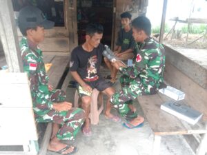 Danpos Riam Sejawak SSK III Pamtas RI-Malaysia Yonzipur 5/ABW Letnan dua Czi Anandya Rahmadhani Agung, bersama Wadan pos Serda Dharu dan anggota kesehatan Pratu Eko melaksanakan anjangsana kesehatan secara gratis kepada warga tepatnya di rumah bapak Abet dan keluarganya.