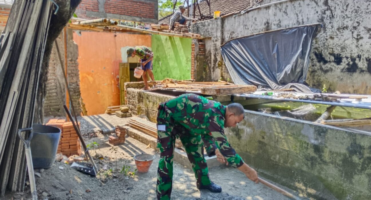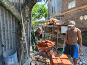 Balance News | Blitar – Selalu Hadir Di Tengah Masyarakat, Babinsa Koramil 0808/12 Wlingi Kodim 0808/Blitar Serma Luhur Budi Santoso. Melaksanakan kegiatan kerja bakti membantu merehab rumah warga binaannya atas nama Bapak Agus, bertempat di RT. 02 RW. 01 Dusun Tegalasri Desa Tegalasri Kec. Wlingi Kab. Blitar, Jumat (9/6/2023).