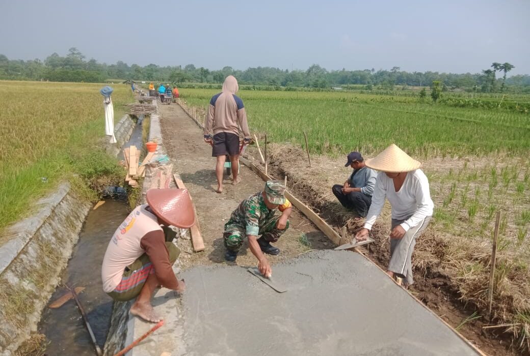 Seperti terlihat saat ini, Serda Alim Santoso bersama warga masyarakat saling bergotong royong, bekerja sama untuk melaksanakan kegiatan pengecoran jalan. Menuju ke persawahan, bertempat di Dusun Wonorejo RT. 02 RW. 07 Desa Jambewangi Kec. Selopuro Kab. Blitar, Jumat (30/6/2023).