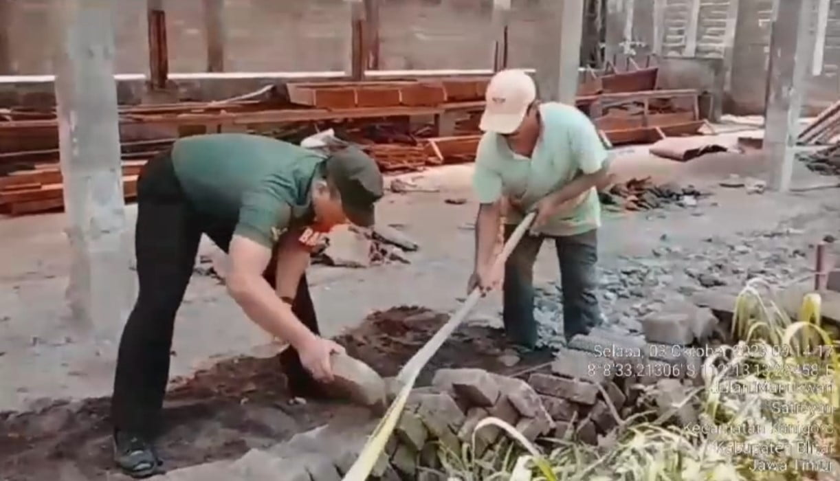 Balance News | Blitar – Babinsa Koramil Kanigoro, Dalam rangka mempererat hubungan sosial dengan warga masyarakat di wilayah binaannya, Babinsa Koramil 0808/03 Kanigoro Kodim 0808/Blitar. Serda Yudi Rimba bersama warga masyarakat, melaksanakan kegiatan gotong royong membantu Bapak Supri membuat kandang kambing, bertempat di Lingk. Sawahan Kel. Satreyan Kec. Kanigoro Kab. Blitar, Selasa (3/10/2023).